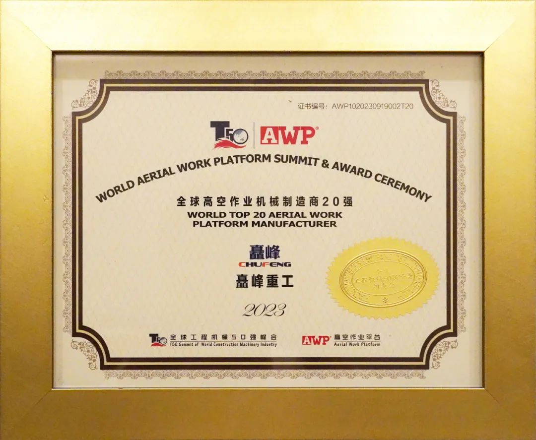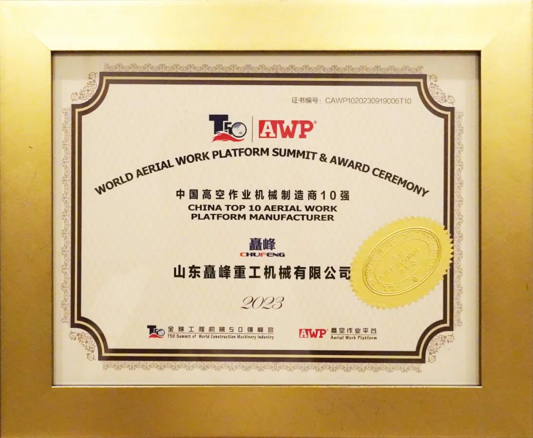 自2021年矗峰重工榮耀獲得中國高空作業(yè)機械制造商10強,連續(xù)三年榮獲“全球20強、中國10強”企業(yè)。矗峰重工將持續(xù)領(lǐng)跑市場,創(chuàng)新安全高效!